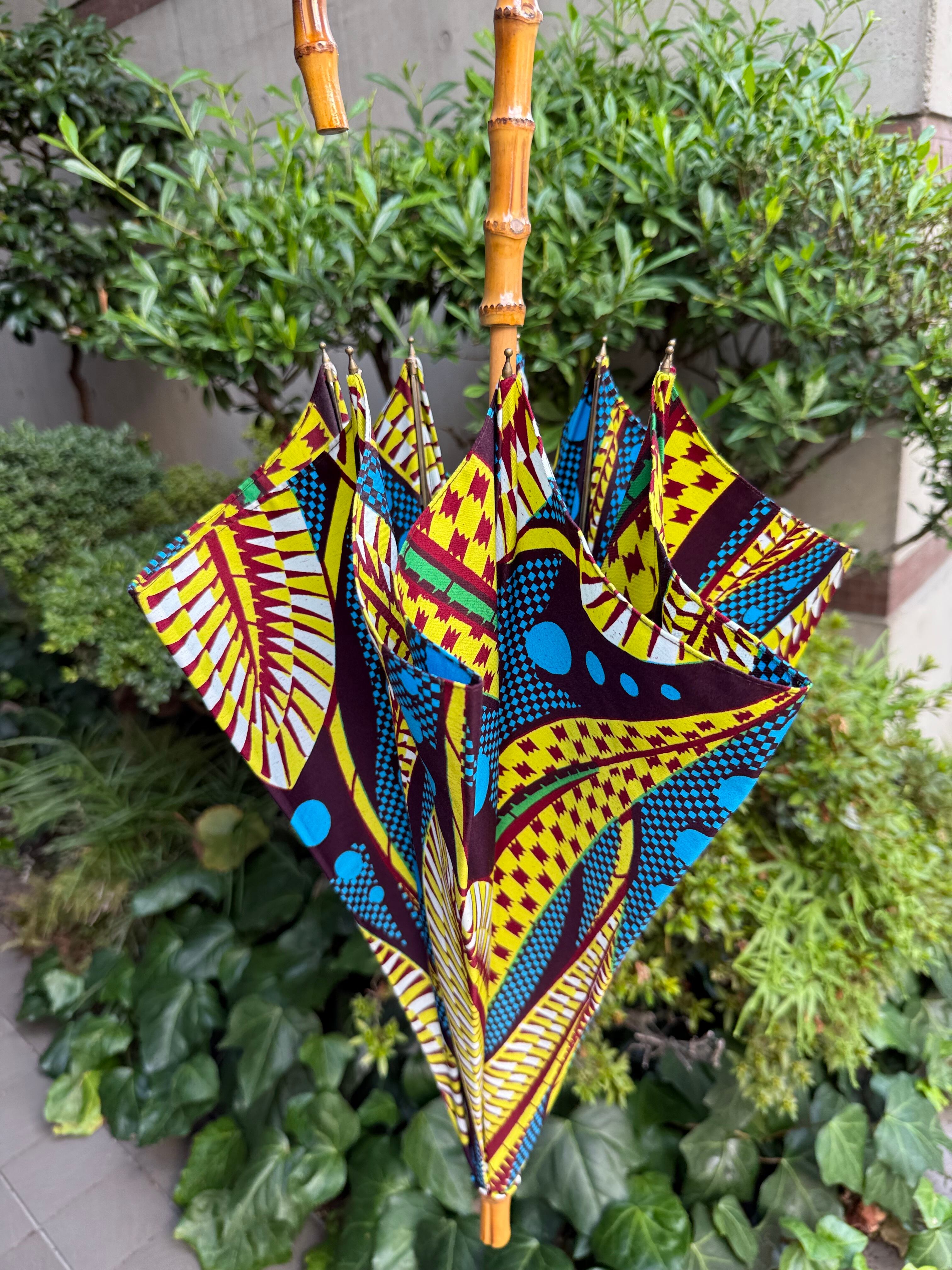 J型のハンドル素材はバンブー。竹の風合いがアフリカンプリントにもぴったりです。とても握りやすい太さとカーブになっています。
